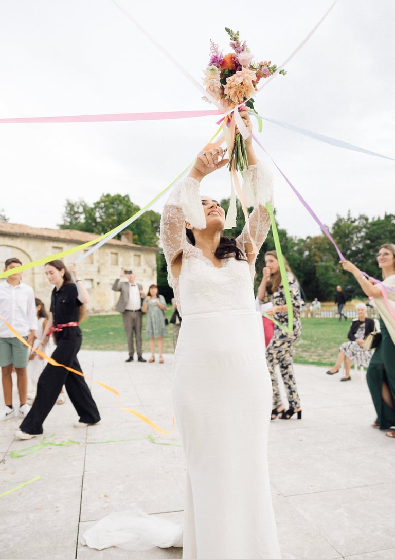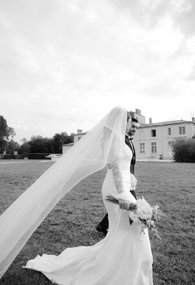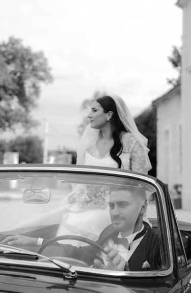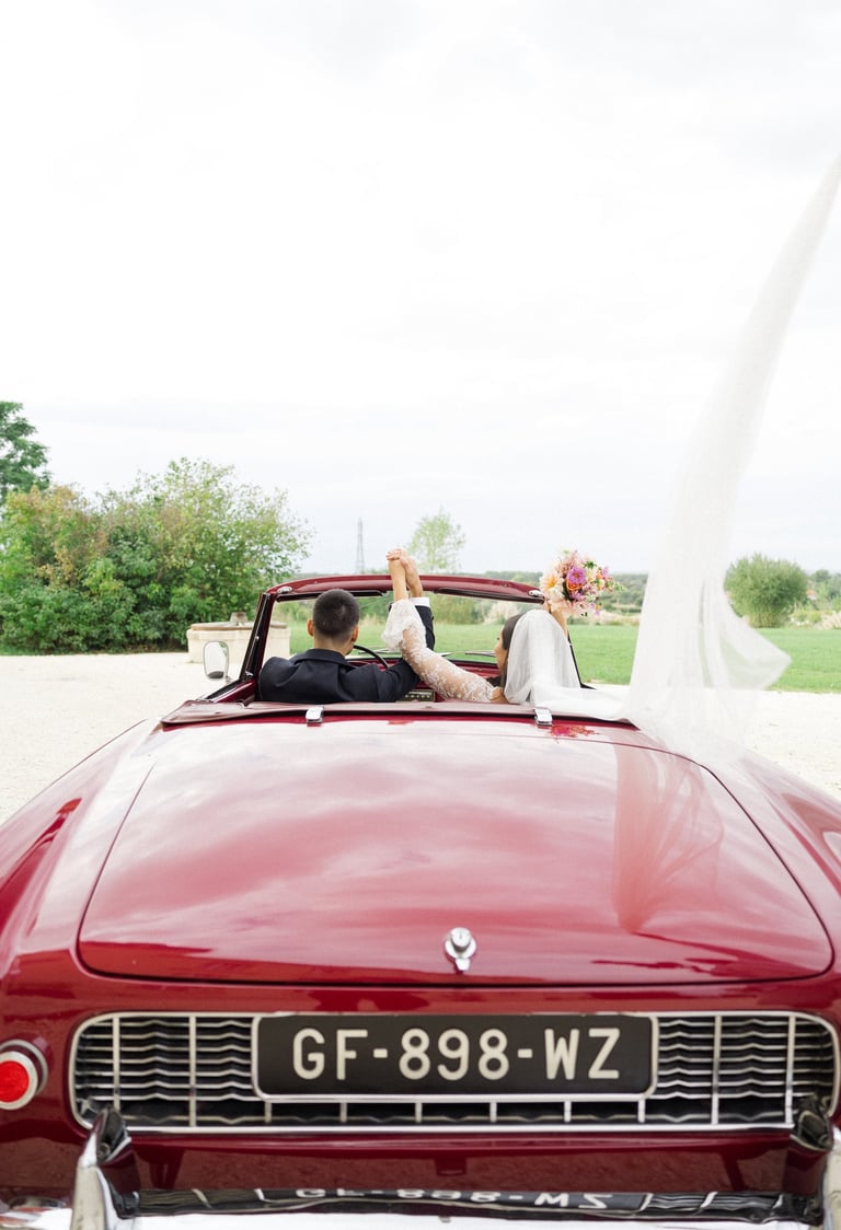 An unforgettable day at Château Formont near Bordeaux, capturing the love of this stunning couple. A beautiful white dress, a charming vintage car, and a setting full of romance and magical moments.