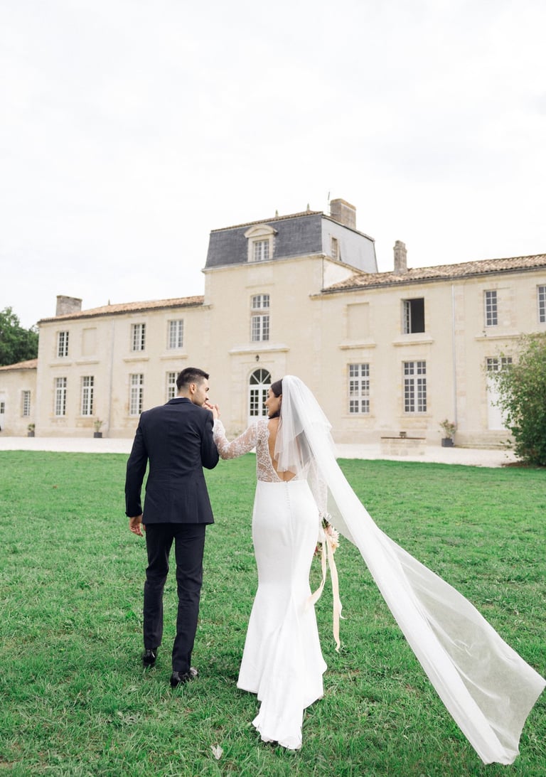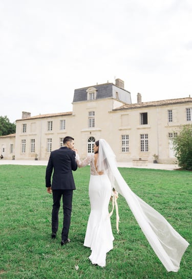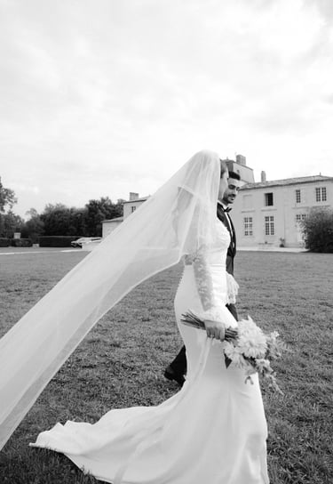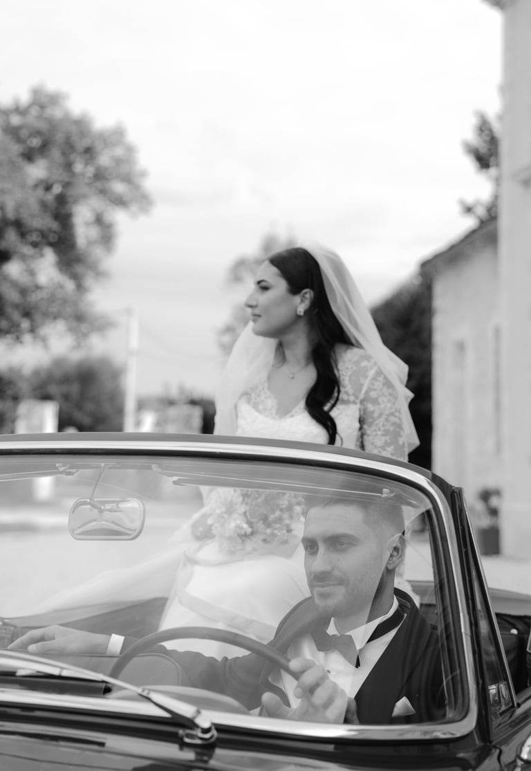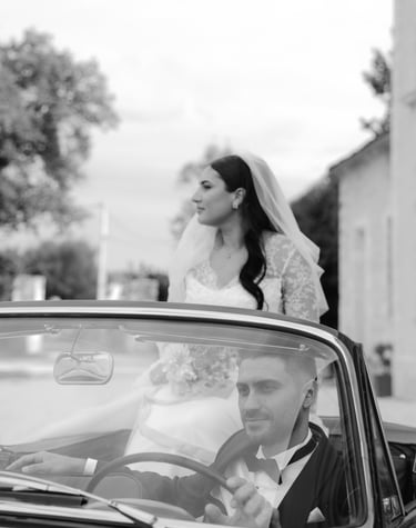 An unforgettable day at Château Formont near Bordeaux, capturing the love of this stunning couple. A beautiful white dress, a charming vintage car, and a setting full of romance and magical moments.